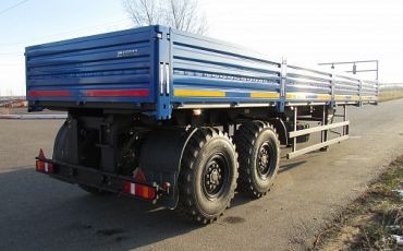 Двухосный бортовой полуприцеп НЕФАЗ 9334-20-10 предназначен для перевозки различных грузов по пересеченной местности в составе автопоезда с тягачами-вездеходами с высотой ССУ 1550 мм. Подвеска рессорная, оси НЕФАЗ, односкатная ошиновка (425/85R21). Объем платформы 22 куб.м.